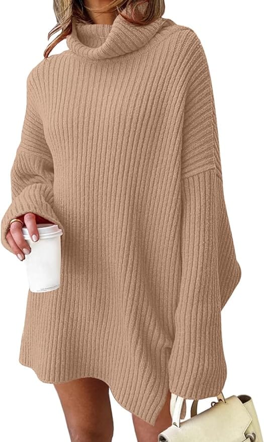 Embrace effortless comfort this Thanksgiving with a Dark Apricot Turtleneck Oversized Long Batwing Sleeve Fall Sweater.