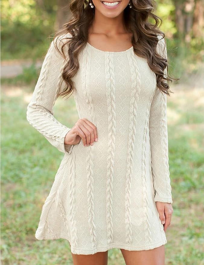 30. White Sweater Dress with Earthy Accents