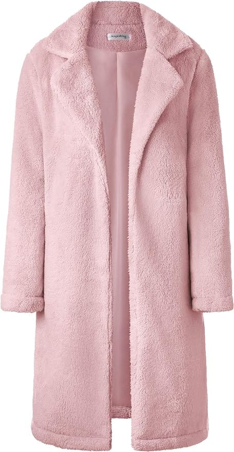 Embrace cozy elegance this Thanksgiving with a Fuzzy Fleece Lapel Open Front Long Cardigan Coat layered over a Black Long Sleeve Drawstring Mini Bodycon Dress.