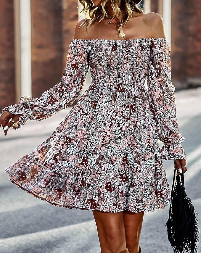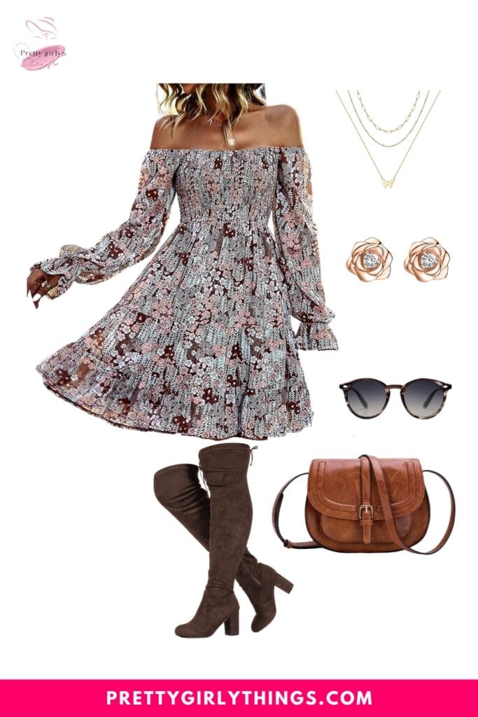 Embrace floral elegance this Thanksgiving with a Long Sleeve Floral Swiss Dot Ruffle Party Mini Babydoll Dress paired effortlessly with Knee Block Heel Stretch Boots. Complete the ensemble with a chic Crossbody Bag for a graceful and stylish look that’s perfect for celebrating the season with flair.