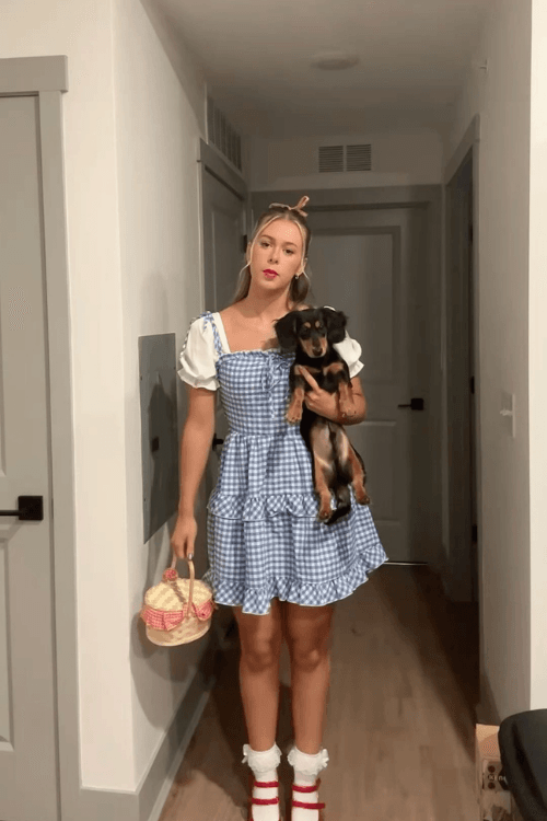 Stepping straight out of Oz! This Dorothy costume is instantly recognizable with the iconic blue gingham dress, white blouse, and matching red shoes, perfectly completed with a little dog sidekick as Toto. The look is sweet, classic, and ideal for including your furry friendāperfect for solo show-stopping or group costumes as the whole Wizard of Oz crew!