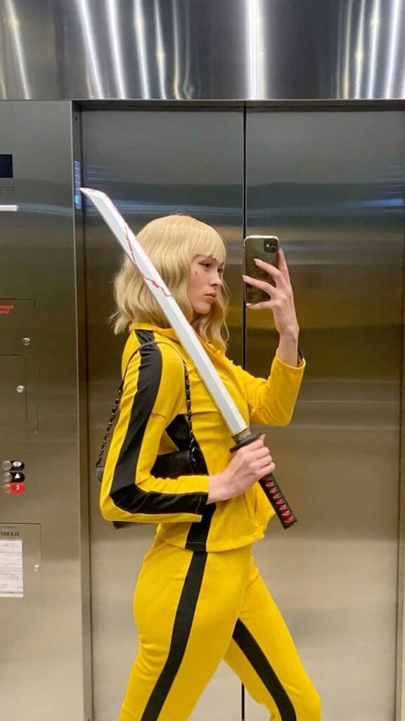 This instantly iconic look channels The Bride from “Kill Bill”āa yellow-and-black tracksuit, katana sword, and platinum blonde wig for classic Tarantino style. Itās fierce, recognizable, and a top pick for movie lovers, action fans, or anyone wanting to serve serious attitude at Halloween!
