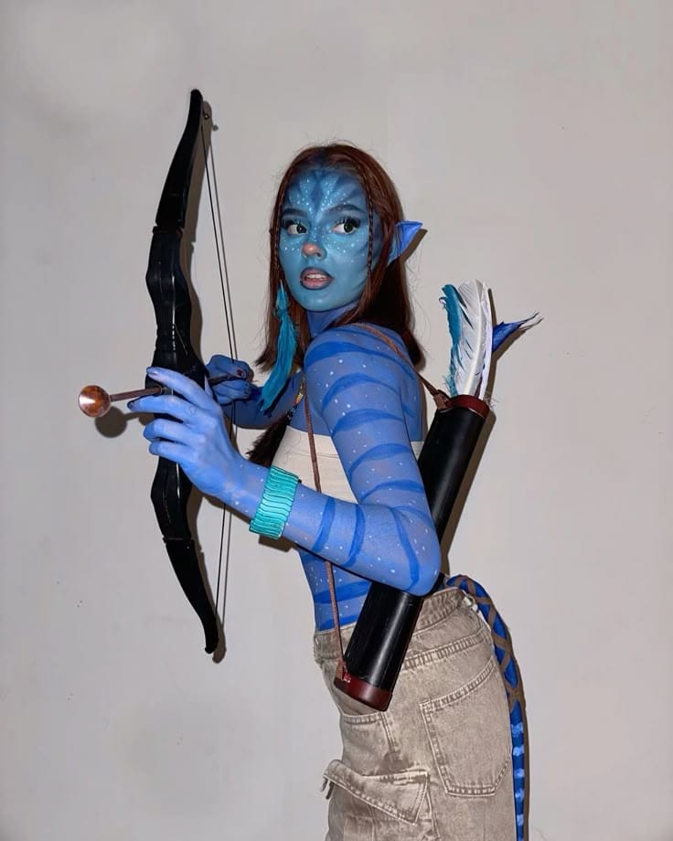 Transform into Neytiri for Halloween and unleash your inner Naāvi warrior from Pandora! The blue body paint, striped top, and DIY bow and arrow make the character so recognizable and creative, making it a show-stopper at any costume party. This costume is perfect for anyone who loves iconic movie looks, or for friends wanting to team up as the whole Avatar squad!