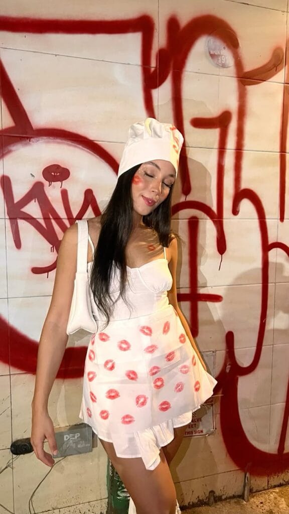 This costume turns heads and spreads smilesāthink flirty chef with a twist, covered in playful lipstick kisses! The chefās hat and apron dotted with kiss prints are cheeky and creative, making this a hilarious winner for anyone who loves bold, DIY costumes. Itās perfect for solo fun or matching with a friend dressed as another flirty food-themed character!