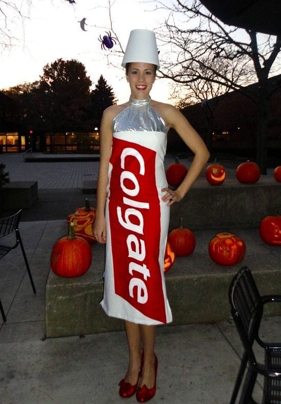 How clever is this Colgate toothpaste costume for Halloween? The shiny silver neckline, iconic red logo, and creative cap hat make it instantly recognizable and super funny. Itās a great pick for anyone who loves puns or wants a fresh, memorable lookāideal for solo smiles or paired with a friend as a toothbrush for extra laughs!