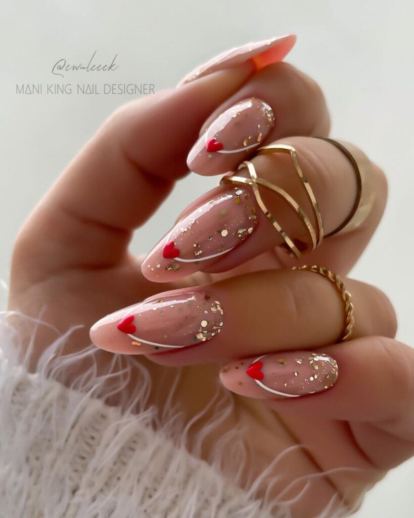 Whether it’s subtle accents or full-on glitter glam, these designs capture the essence of romance, adding a touch of magic and glamour to your holiday ensemble. Embrace the shimmer, let your nails sparkle, and celebrate love with a dazzling twist this Valentine’s Day.