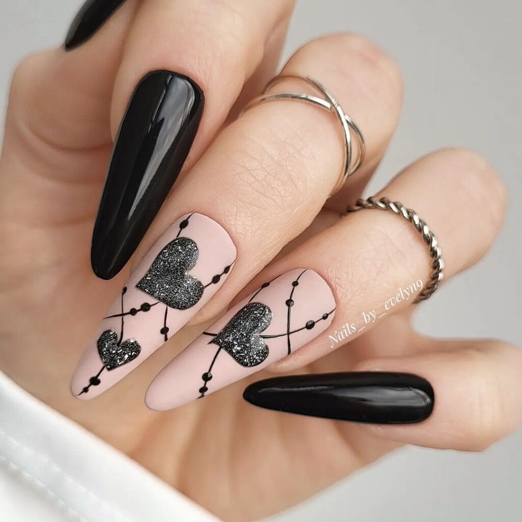 From sleek matte finishes to intricate patterns accentuated with hints of red or shimmer, these nails capture the essence of romance in a bold, modern style.