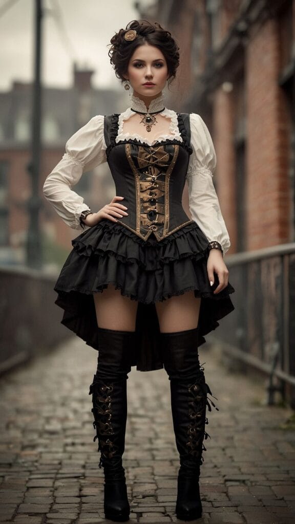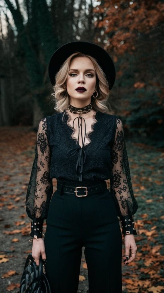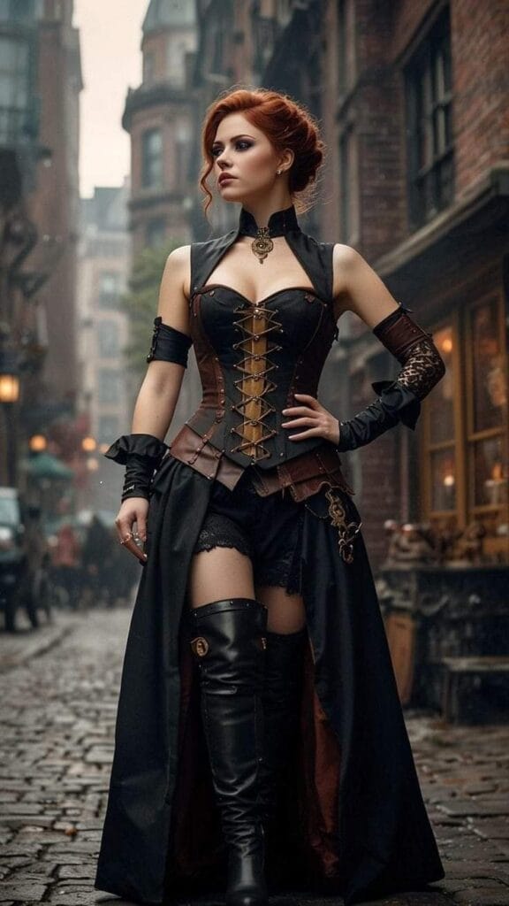 - High-Collared Shirt or Corset: Add a touch of gothic elegance with a high-collared shirt or a corset in rich fabrics like velvet, silk, or lace. For a more traditional look, go with Victorian-inspired clothing, or for a modern twist, try a leather corset or structured top.