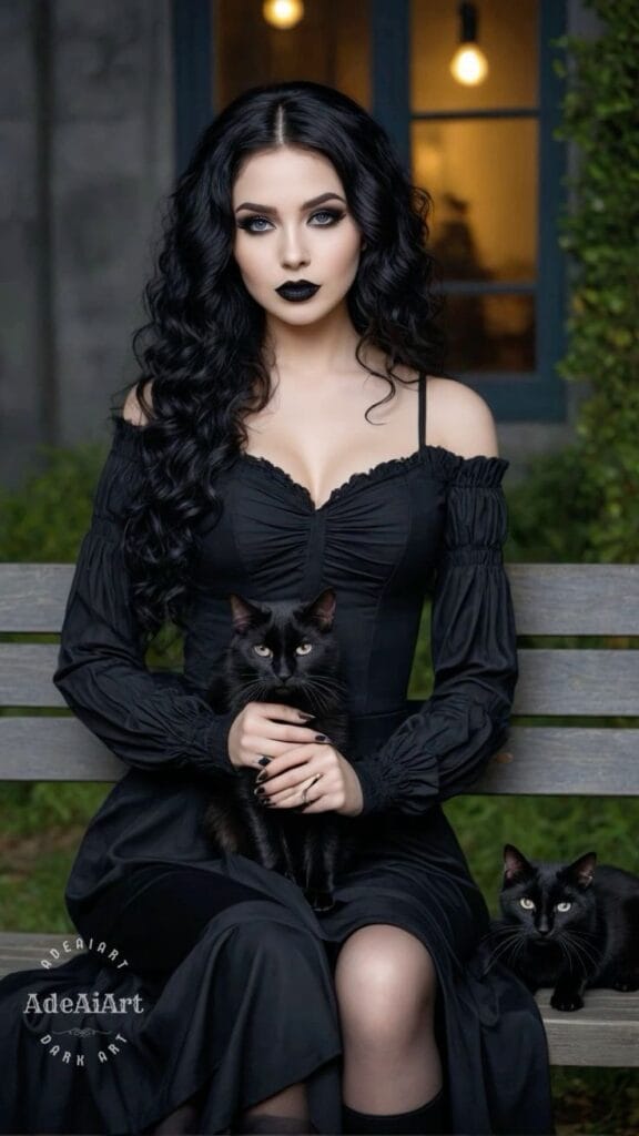 - Hair Styling: For hair, you can go with sleek, glossy waves or backcombed, voluminous locks. If you’re feeling adventurous, add some temporary black or blood-red dye for extra intensity. You can also accessorize with hair jewelry or a gothic headpiece.