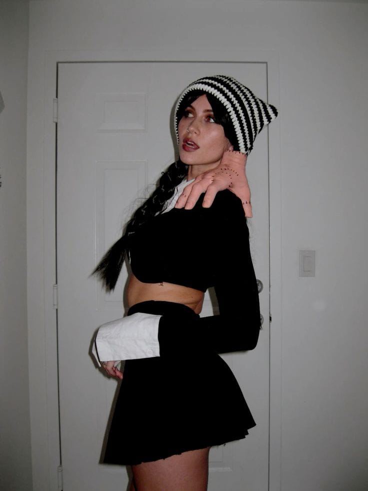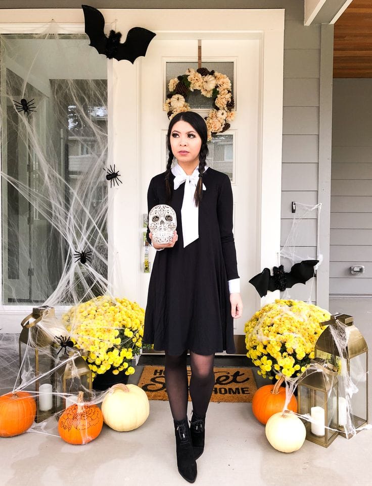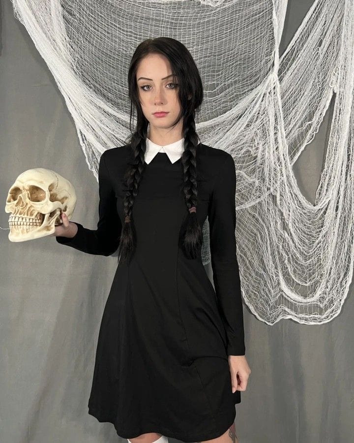 You can never go wrong with the original Wednesday Addams look. All you need is a plain black dress with a crisp white collar, black tights, and her signature braided pigtails. Itās minimal, spooky, and instantly recognizableāperfect if you love a no-fuss Halloween costume.