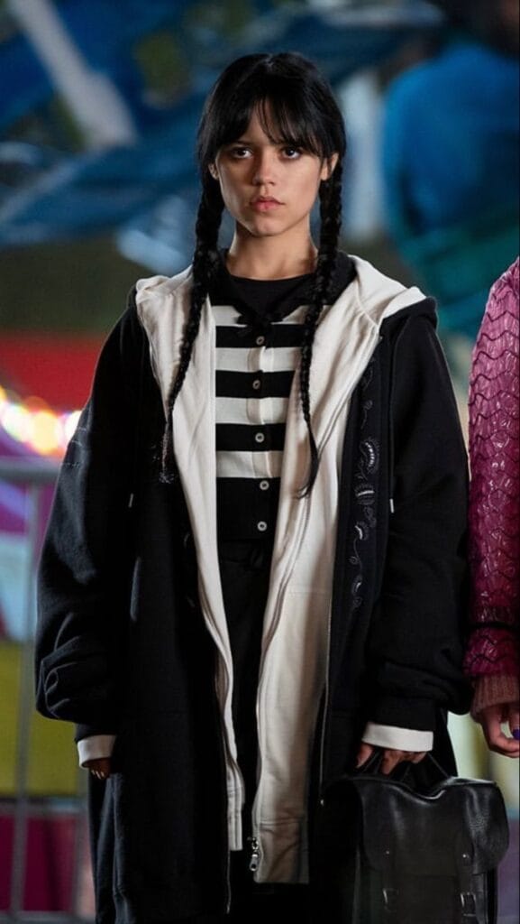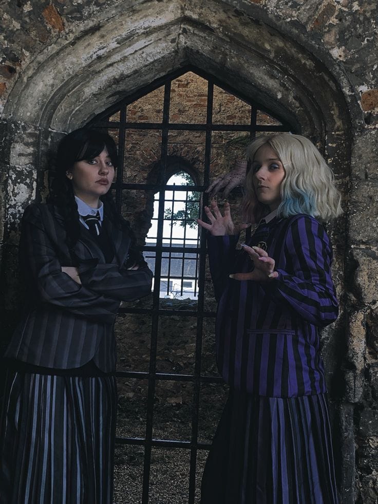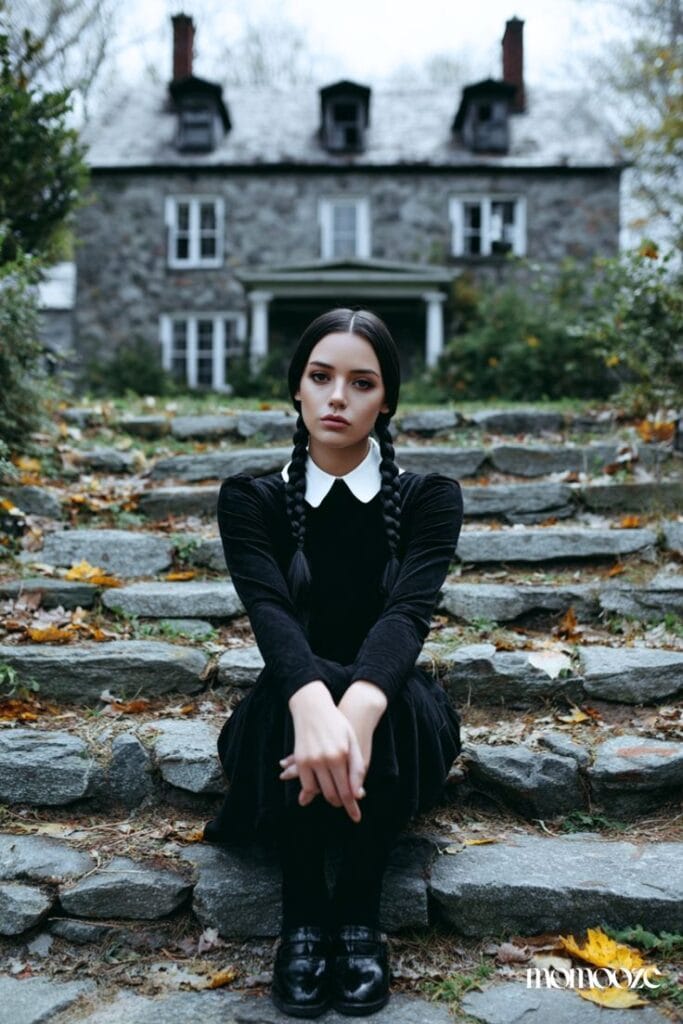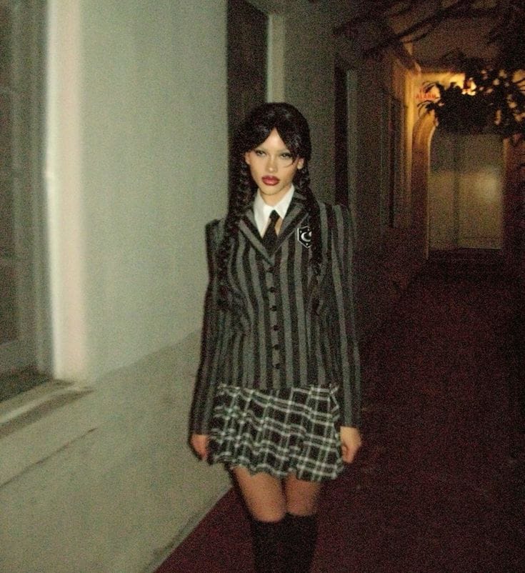 Wednesdayās style doesnāt have to be limited to Halloweenāit actually works perfectly for fall and winter fashion. Think black turtlenecks, pleated skirts, plaid blazers, and structured coats paired with tights and loafers. Youāll get that moody, dark academia look while still keeping it chic and wearable. Itās a subtle way to bring Wednesdayās spooky charm into your everyday wardrobe.
