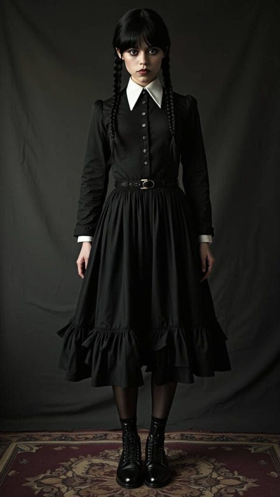 The right accessories make all the difference when it comes to pulling off a Wednesday Addams costume. Go bold with black lipstick or keep it subtle with a moody smoky eyeliner look. Pair your outfit with chunky black boots or Mary Janes, and donāt forget a gothic choker to finish off that dark, mysterious vibe. These little details instantly elevate even the simplest costume.