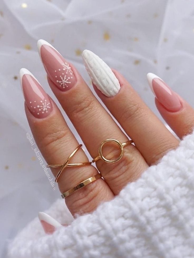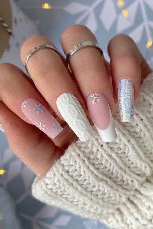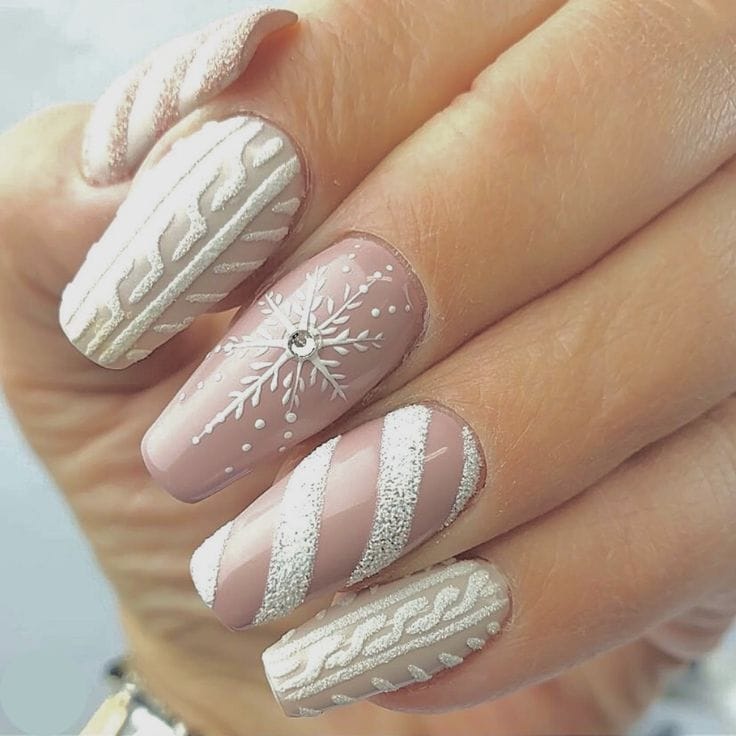 4. Cozy Elegance: White Christmas Sweater Nails to Warm Up Your Look