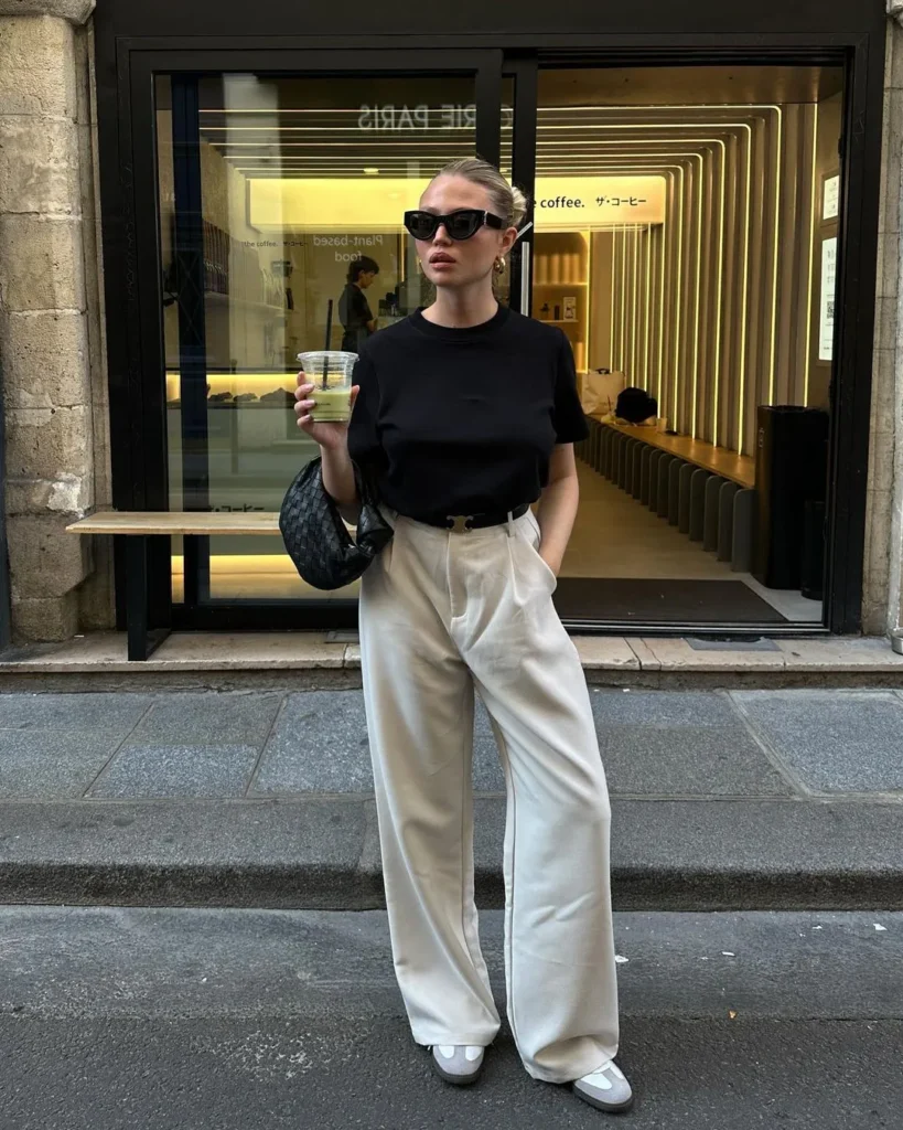 @ marine_dietThis minimalistic pairing of a black tee with beige wide-leg pants strikes the perfect balance between casual and refined. Itās a go-to outfit for those days when you want to keep it simple yet chic.