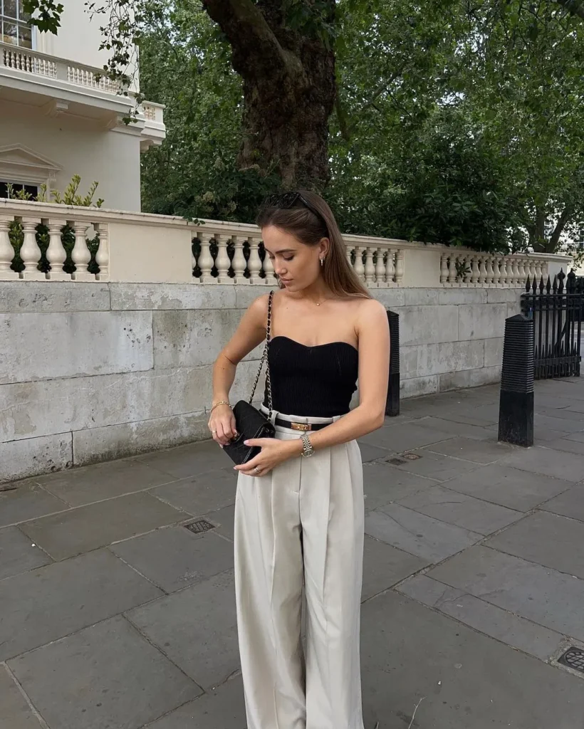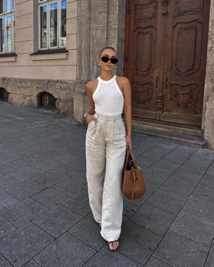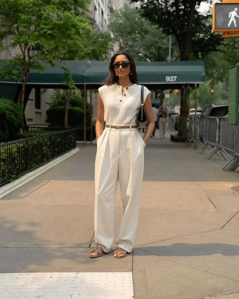12. Sleek White Tank with High-Waist Trousers