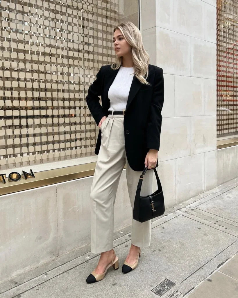 @ mildagudThe soft tones of the white top and beige pants get a stylish upgrade with the sleek black blazer. Itās the perfect mix of casual and business chic for a polished look thatās ideal for work or brunch.