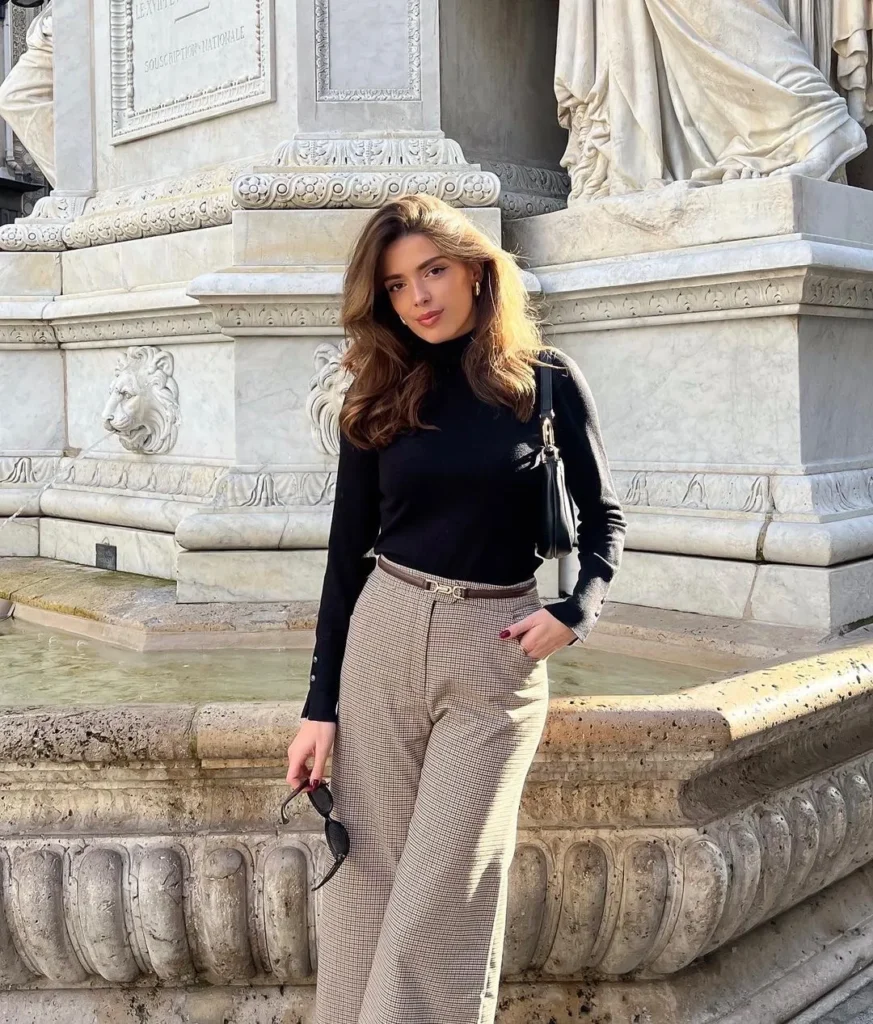 @ heloise.guilletThe black turtleneck adds a sophisticated touch to the trendy plaid pants, creating a smart and modern look. This combo is great for transitioning from the office to evening events.