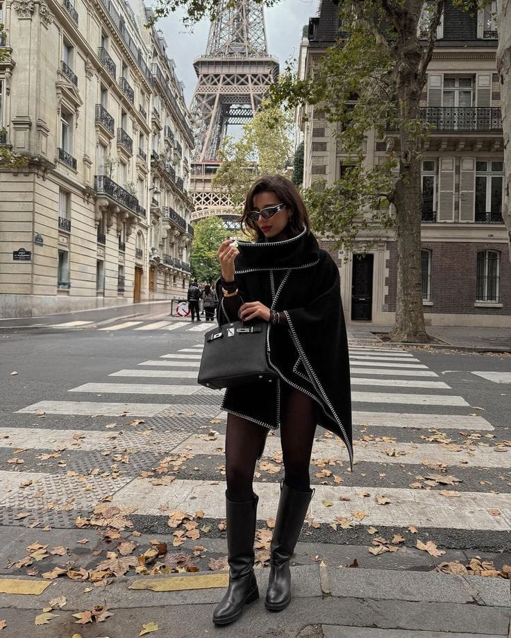 3. Elegant Black Cape & Tall Boots Ensemble