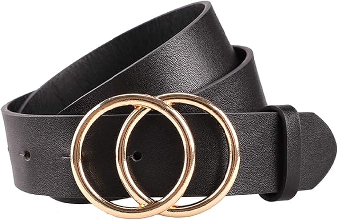 Elevate your style with this ensemble, merging the comfort of a cardigan with the boldness of a statement belt layered over sleek leather leggings.