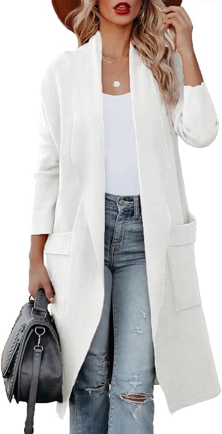 Elevate your denim look by adding a stylish cardigan and a coordinating belt.
