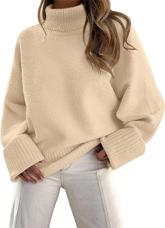 Embrace warmth and style with an oversized cardigan effortlessly draped over a snug turtleneck.