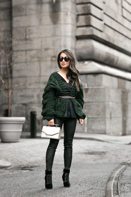 19. Cardigan, Statement Belt, and Leather Leggings Ensemble