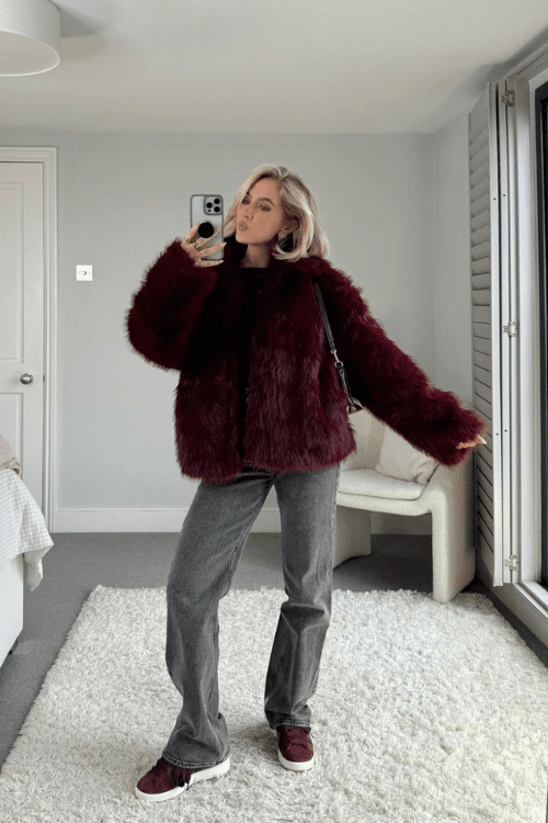 @ indiaamoonClassic denim paired with a plush fur jacket is a match made in style heaven. Complete the look with knee-high boots and a bold red lip for that effortlessly cool winter aesthetic. A crossbody bag will elevate this look even further.