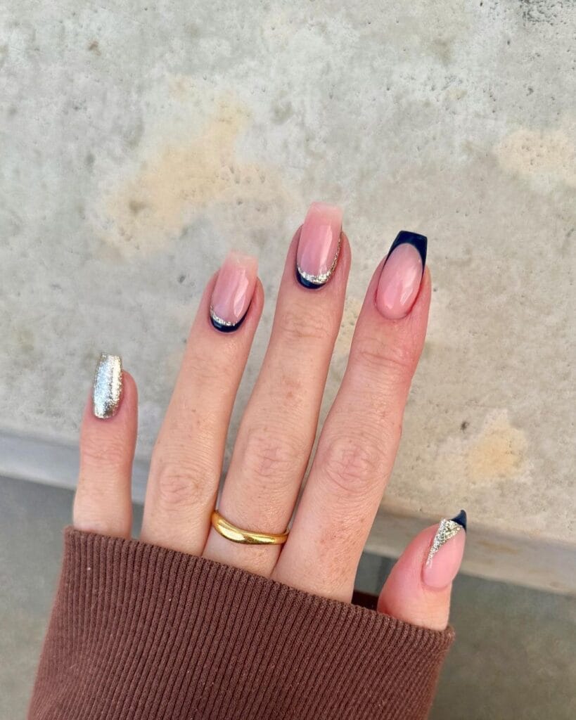 Instead of the usual white tips, you can experiment with wintery shades like icy blue, silver, or even a pop of glitter. Itās a chic and subtle way to embrace the season while keeping your nails elegant and stylish for any winter occasion.
