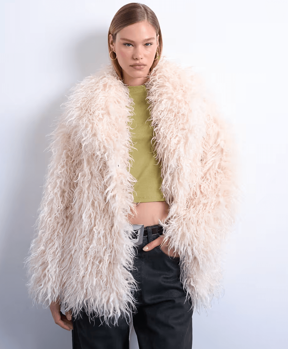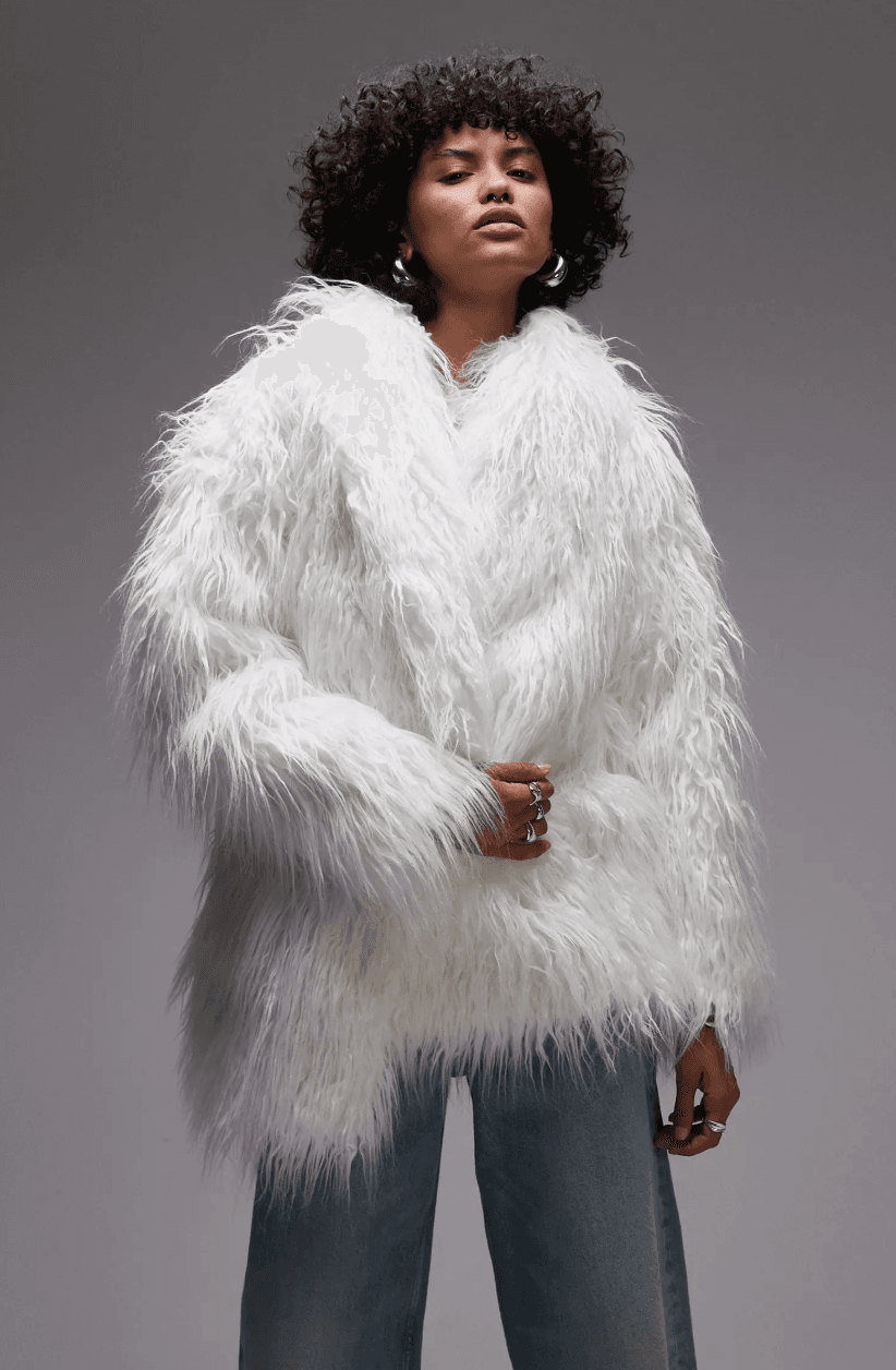 14. Plush Shaggy Faux Fur Coat with Relaxed Denim