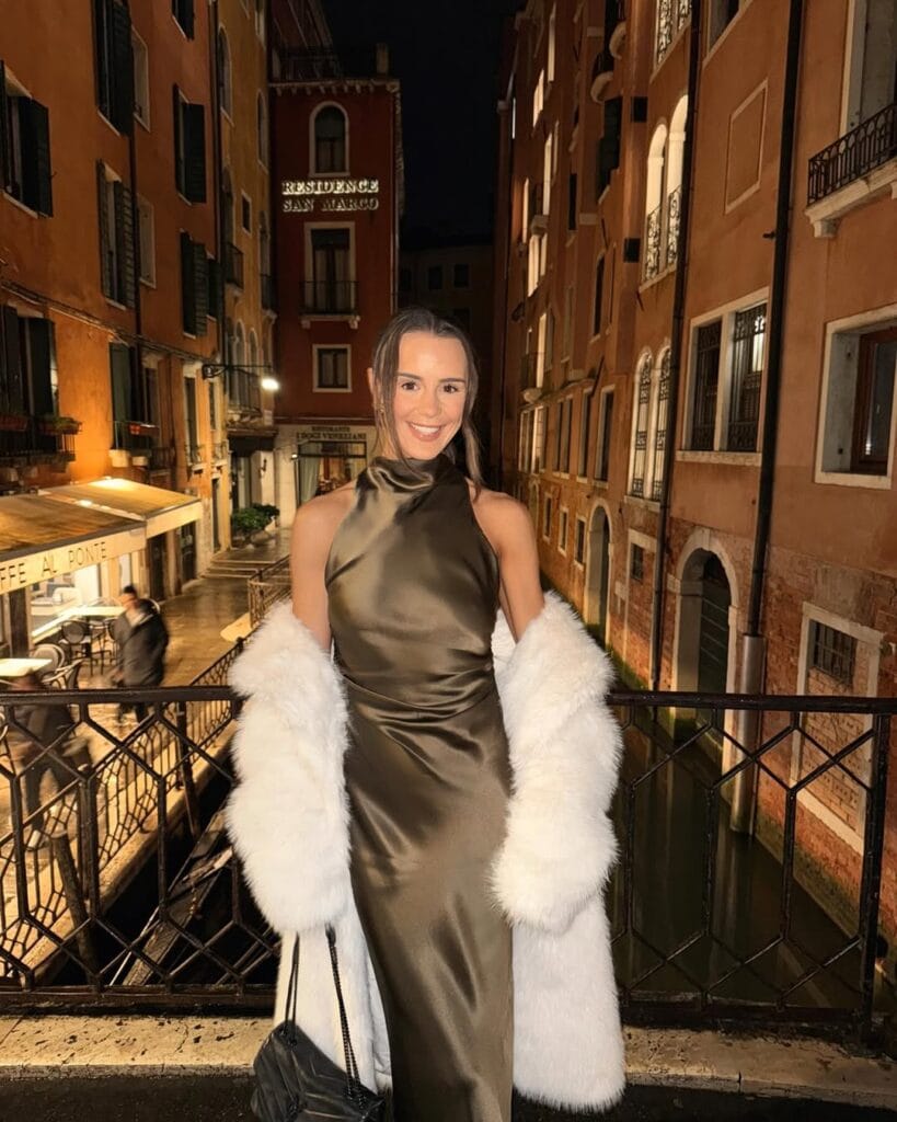 @ whatemworeSheās serving major elegance in a rich olive satin halter dress, topped off with a cozy white faux fur coat for glam winter warmth! This combo is all about luxe vibesāperfect for chilly nights when you still want to look stunning.