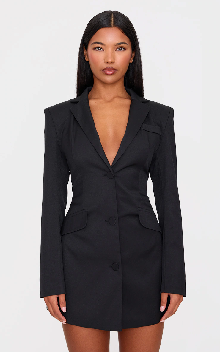 @ heloise.guilletSheās keeping it classy in a sharp black blazer mini dress, styled with sheer black polka dot tights for a playful twist. This look is the perfect mix of timeless sophistication and flirty funātotally brunch or evening-ready!