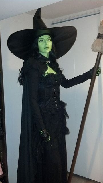 This Wicked Witch costume is a showstopper for Halloween! With hauntingly green skin, a dramatic black corset gown, flowing cape, and that iconic tall witch hat, this look channels all the magical mischief from Oz. The broom adds an extra touch of authenticity, making it a perfect, creative option for anyone who wants to steal the spotlight solo or team up with friends dressed as other Wizard of Oz characters!