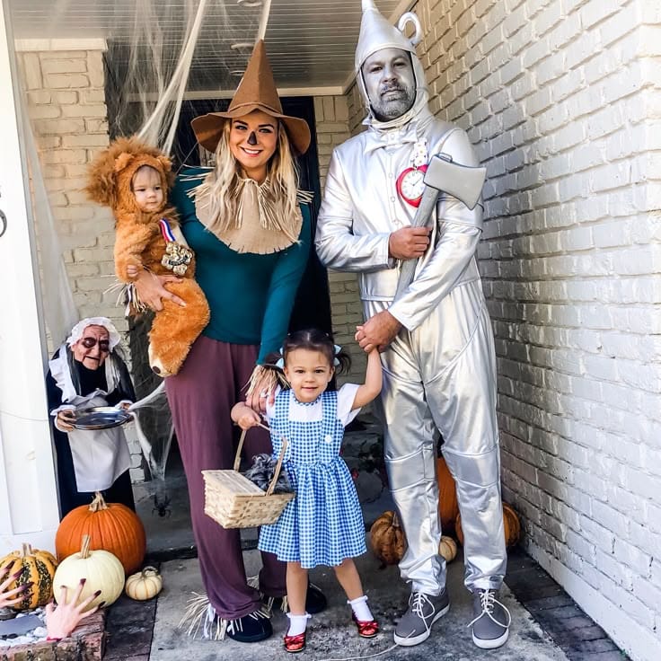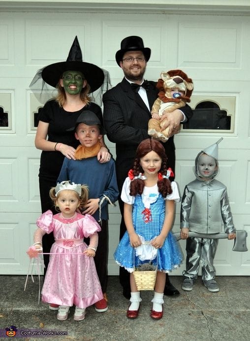 This Wizard of Oz family costume lineup is the definition of adorable and creative! With everyone decked outāfrom the Wicked Witchās dramatic hat, Glindaās sparkling pink dress, Dorothyās classic blue gingham and ruby shoes, to the Tin Man and even the Lionāeach character brings Ozās magic to life.