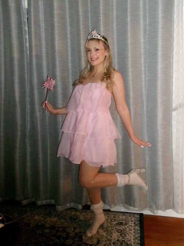 This costume is a sweet homage to Glinda the Good Witch from The Wizard of Oz. It features a soft pink ruffled dress, sparkly tiara, fairy wand, and delicate socks with heels for a magical touch. The look beautifully captures Glindaās enchanting, whimsical spirit ā ideal for anyone wanting a fairy-tale costume with a gentle, regal vibe.